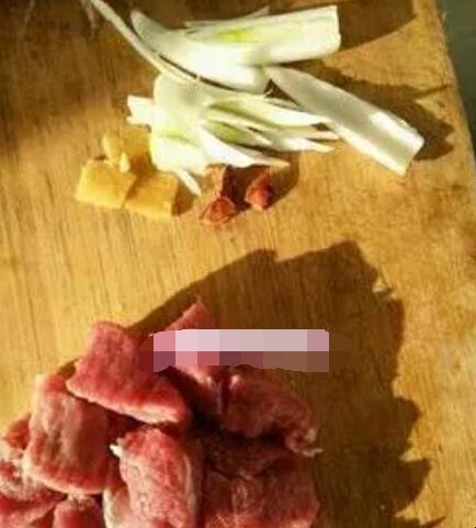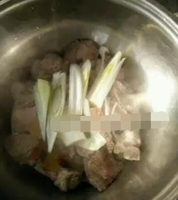 2、把肉焯一下,把肉,葱,姜,八角放到锅里。