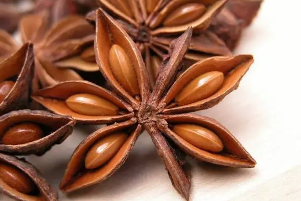 3、八角:属木兰科、八角属,分布于中国广西西部和南部,是制造化妆品、甜香酒、啤酒、食品工业的重要原料。八角,是一种著名的调味香料,在日常调味中可直接使用,如炖、煮、腌、卤、泡等。