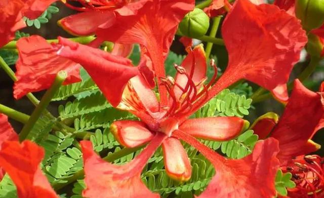 凤凰花的养护技巧 气候温度:凤凰花树冠高大,枝叶茂盛。花分为五瓣,花色红火,在绿叶的衬托下,犹如凤凰一般。所以取名为凤凰花。 凤凰花喜爱高温且湿润的环境,最好温度在20-30℃为宜,但是它不耐寒,因此露天植株在冬天就需要进行保温处理了,温度不能低于10℃,否则会冻死。