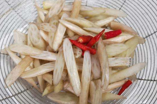藕带在水中浸泡5分钟后清洗干净。藕带切成2~3cm的小段,切好姜片。烧一锅开水,在水里放一勺盐,放入姜片、少量花椒。将藕带煮开。将藕带捞出晾凉,并沥干。将藕带放入盆里,倒入晾凉的盐水和调料最后进行搅拌,完成后装入密封罐保存。 准备材料