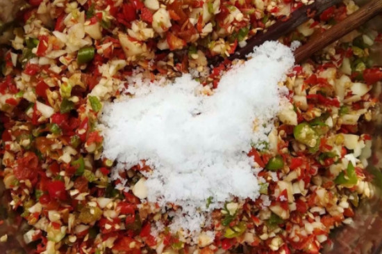 做辣椒酱先要准备一些小米椒,把小米椒和大蒜洗干净之后沥干水分,用刀把小米椒和大蒜切碎之后放入锅里炒熟,注意油锅烧至六分热加辣椒可以煸出香味,翻炒小米椒的时候加入食盐、味精、甜面酱、白糖等佐料熬煮,熬煮出红油就可以装入罐子里保存。 步骤1