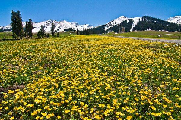 金莲花全棵植株没有毛,地下根长到7厘米,茎杆高30-70厘米,茎杆没有分枝,叶子是五角星的形状,基部是心形的形状。一般开花时期为6-7月份,8-9月份结果。