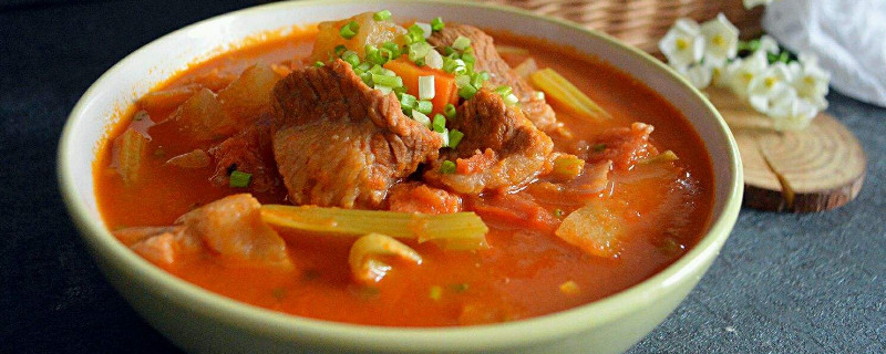 将牛腩洗净后焯水片刻,再倒入已经炒化冰糖的锅内翻炒至牛腩上色,加入葱、姜、蒜、八角、桂皮炒香,之后倒入牛腩焯水的汤和少量盐煮开。倒入高压锅内压45分钟后,将炒好的西红柿、胡萝卜、番茄等食材倒入高压锅内,出锅前撒上葱花即可。 牛腩柿子的制作方法