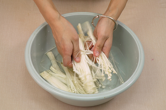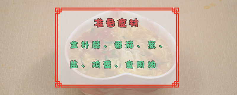 准备食材:金针菇、番茄、葱、盐、鸡蛋、食用油。