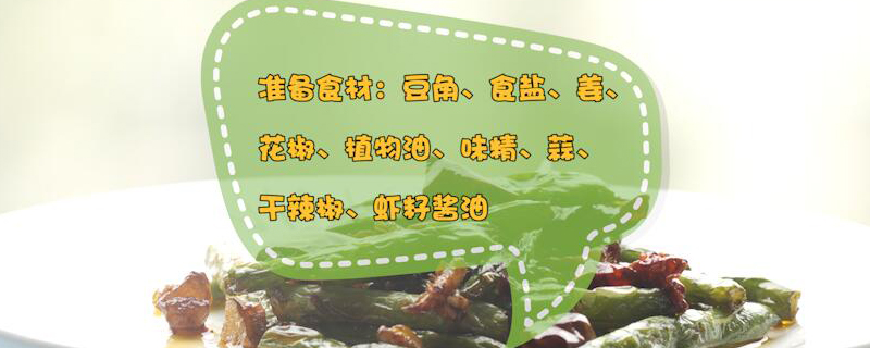 准备食材:豆角、食盐、姜、花椒、植物油、味精、蒜、干辣椒、虾籽酱油。