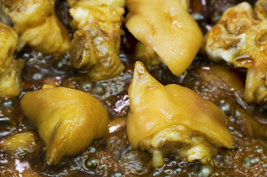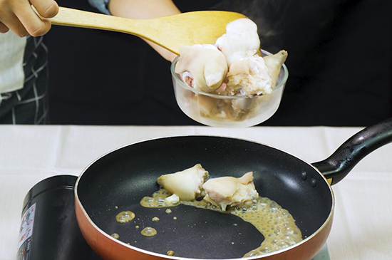 3、再在锅中放入少量的油、葱姜,将猪蹄放入锅中后,加入适量的老抽和清水、盐、八角、冰糖,用大火收汁就可以装盘,这样香味扑鼻的猪蹄就做好了。 |