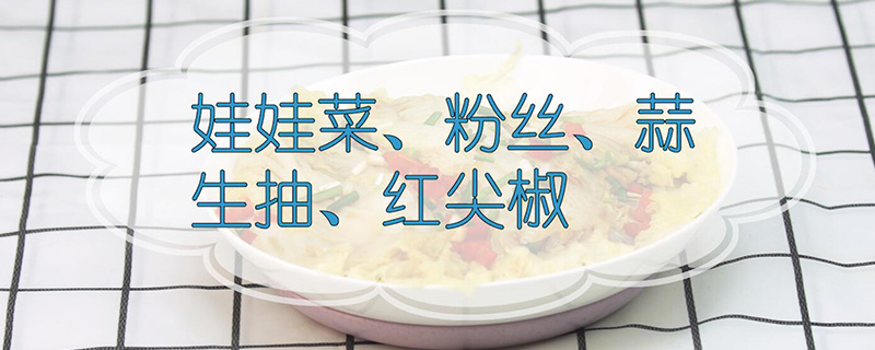 准备食材:娃娃菜、粉丝、蒜、生抽、红尖椒、香葱、胡椒粉、白砂糖、水、植物油。