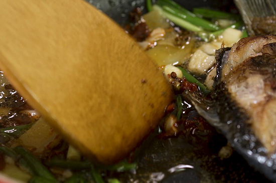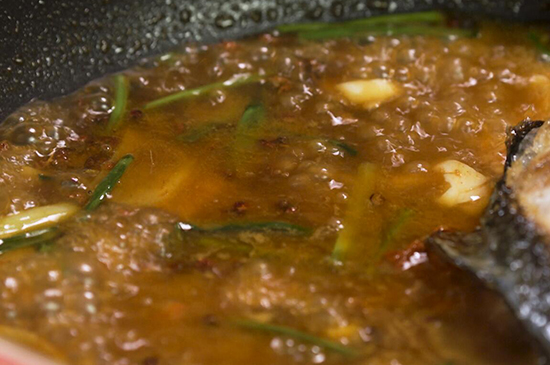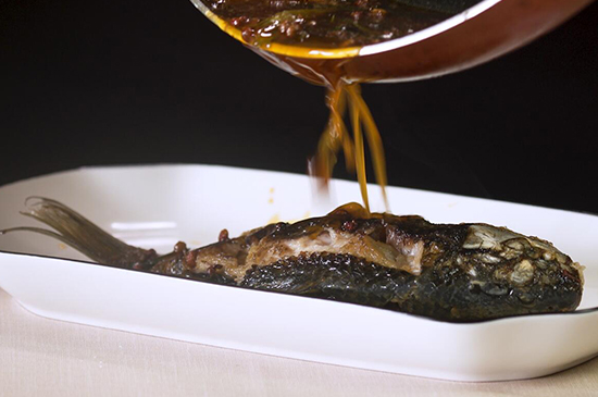 6、最后把罗非鱼盛出,锅内的汤汁撒上盐收汁后淋在罗非鱼上,色香味美的红烧罗非鱼就做好了。 |