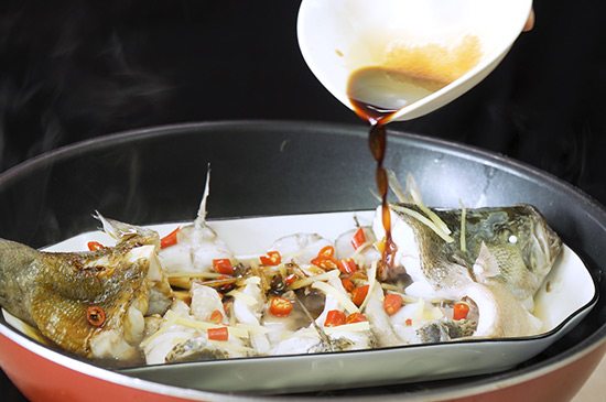 5、将鱼汁淋在蒸好的鲈鱼上便可食用。 |