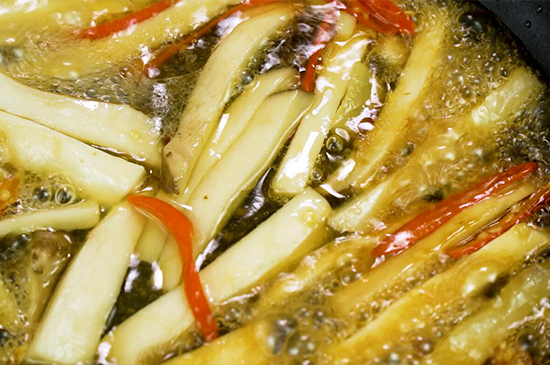 起锅烧油放入姜、蒜、白糖、小米椒和杏鲍菇翻炒均匀,再依次加入盐、料酒、蚝油、生抽和少量水盖锅焖制几分钟。最后将腌好的肉条放入锅内与杏鲍菇一起翻炒,再加入青椒炒熟,就可以做成一份美味的杏鲍菇炒肉。 杏鲍菇炒肉的制作方法