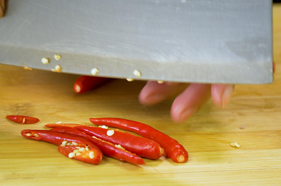 准备食材:杏鲍菇、食用油、生抽、酱油、盐、猪肉、蚝油、青椒、小米椒、姜、蒜、白糖、生粉、料酒。