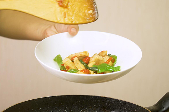 5、收汁期间加入青椒、葱段继续翻炒,直到青椒炒至断生、汤汁剩1/3时,就可以起锅装盘,一份美味的红烧鸡肉就做好了。 |