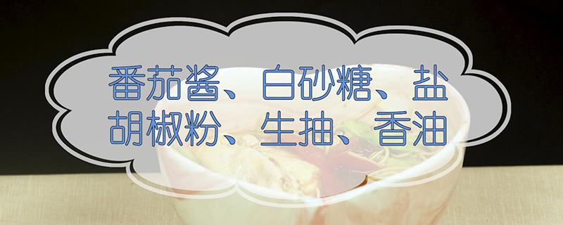 准备食材:番茄、蒜、空心挂面、鸡蛋、青菜、番茄酱、白砂糖、盐、胡椒粉、生抽、香油。