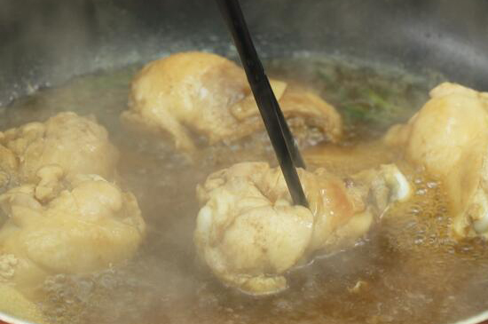 4、鸡腿肉可以用筷子戳破时,调至大火收汁,,直到汤汁收至1/4时,一份美味的蜜汁鸡腿就做好了。 |