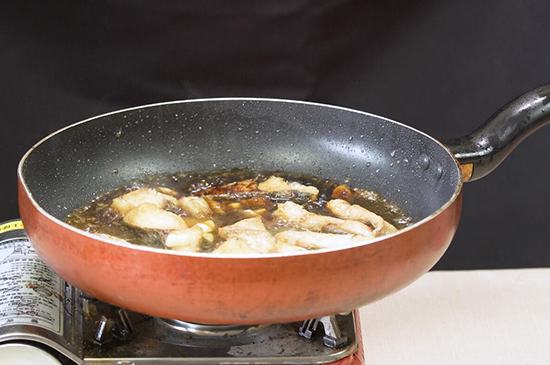 起锅烧油放入姜片炒出香味后,放入腌好的鱼块放入煎至两面金黄,再倒入生抽、老抽、料酒、清水和蒜瓣炒匀,盖锅大火焖煮5分钟。之后依次加入甜辣酱、白糖炒匀焖煮2~3分钟,均匀撒上胡椒粉、葱花、香菜,一份美味的香辣鱼就完成了。 香辣鱼的制作方法