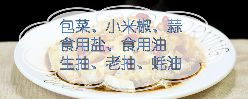 准备食材:包菜、小米椒、蒜、食用盐、食用油、生抽、老抽、蚝油。