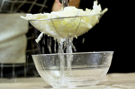 1、包菜洗净后切成丝,用盐水浸泡10分钟左右,再冲洗干净并沥干水分。来源: www.ws46.com