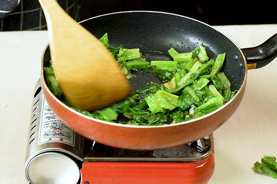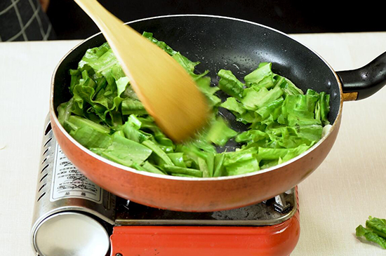 4、翻炒均匀后,一份香脆爽口的蒜蓉油麦菜就做好了。 |