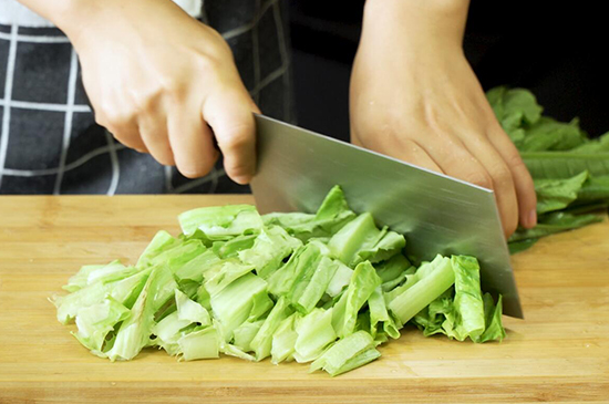 1、油麦菜洗净后菜杆切段,大蒜切碎后备用。