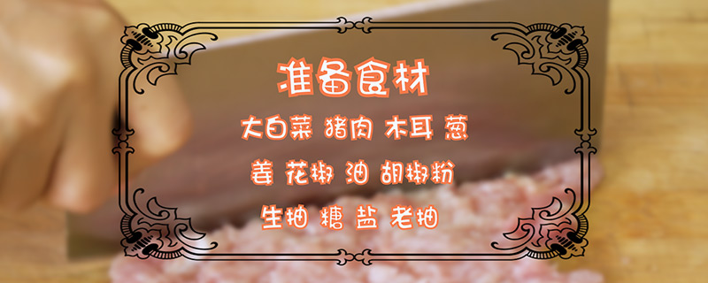 准备食材:大白菜、猪肉、木耳、葱、姜、花椒、油、胡椒粉、生抽、糖、盐、老抽。