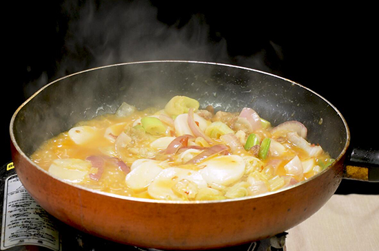 4、汤汁快干时,加入年糕翻炒均匀,直到汤汁完全收干即可盛出装盘,一份美味的炒年糕就做好了。 |