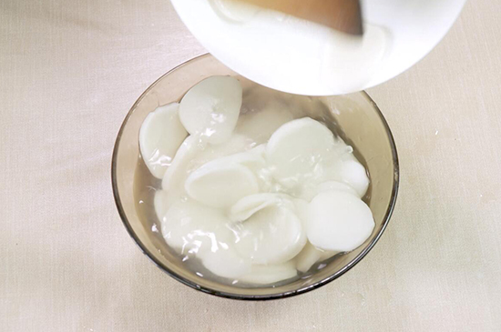 起锅烧油放入五花肉煸炒至金黄色后,放入葱段炒出香味,再依次倒入洋葱片、泡菜、辣酱和水翻炒均匀,熬煮至汤汁快干时,加入年糕翻炒均匀,直到汤汁完全收干即可盛出装盘,一份美味的炒年糕就完成了。 炒年糕的制作方法