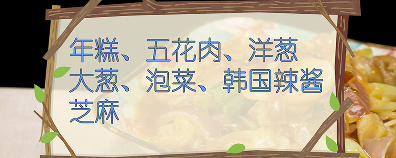 准备食材:年糕、五花肉、洋葱、大葱、泡菜、韩国辣酱、芝麻。