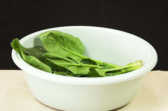 准备食材:菠菜、大蒜、盐、糖、食用油。