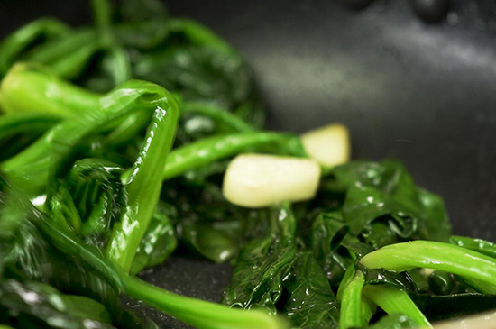 起锅烧油放入大蒜丁大火炒出香味后,转小火放入菠菜和适量糖,同时用筷子翻拌均匀。再按照个人口味加入适量盐用筷子翻拌均匀,小火翻拌10秒钟左右即可关火装盘,一份营养美味的清炒菠菜就完成了。 清炒菠菜的制作方法