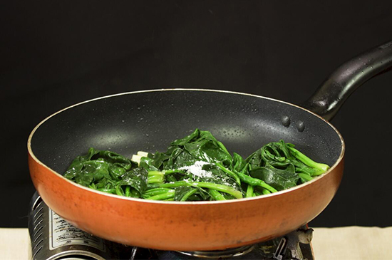 4、按照个人口味加入适量盐, 再用筷子翻拌均匀,小火翻拌10秒钟左右即可关火装盘,一份营养美味的清炒菠菜就做好了。 |