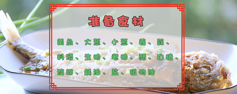 准备食材:黄鱼、大葱、小葱、姜、蒜、料酒、生抽、老抽、醋、白糖、淀粉、蚝油、盐、植物油。