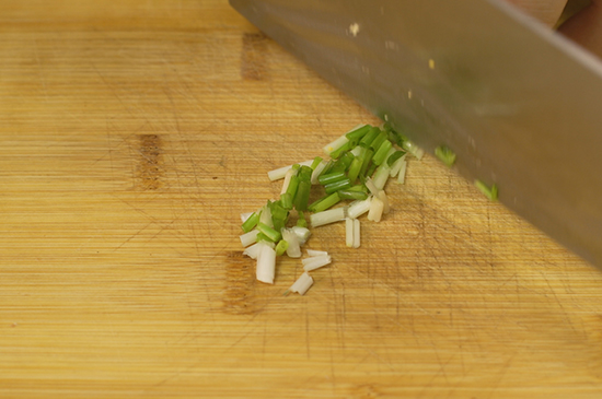 准备食材:米饭、鸡蛋、香葱、盐、食用油。