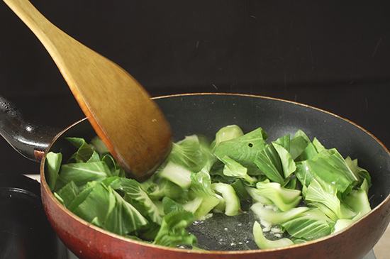 3、倒入控干的油菜,小火翻炒两分钟,油菜慢慢变软后加入适量的食盐、鸡精、白糖调味,翻炒均匀,再加入剩下的一半蒜蓉翻炒,出锅前撒上泡好的枸杞子即可。 |