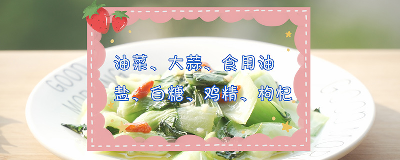 准备食材:油菜、大蒜、食用油、盐、白糖、鸡精、枸杞