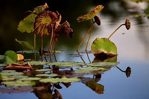 2.宿骆氏亭寄怀崔雍崔衮 竹坞无尘水槛清,相思迢递隔重城。 秋阴不散霜飞晚,留得枯荷听雨声 。 二、诗句原意及创作背景 “留得枯荷听雨声”的原意是秋雨淋淋漓漓,敲打在水池中的枯荷上,有一种“大珠小珠落玉盘”的美感。错落有致的雨声,清爽凉快的秋风,再佐以荷塘略显孤寂的调调,有一种别样的美。作者就是在这种环境下去怀念崔雍、崔衮两个朋友的。