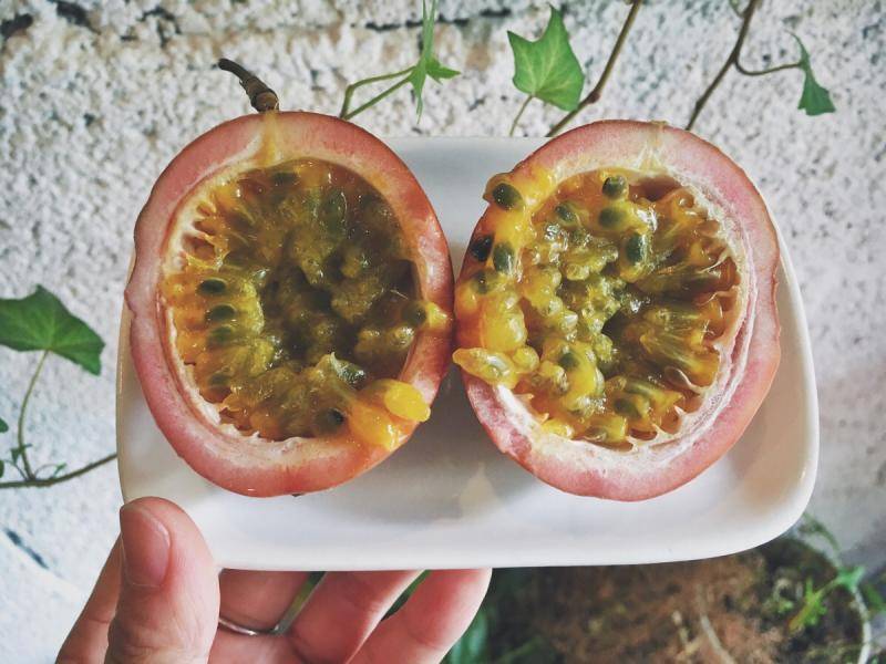 首先,小编给大家普及一下什么是百香果。百香果,它的另外一个名字呢,叫做鸡蛋果,也就是说它长得就像一颗颗鸡蛋一样。当你把百香果对半切开的时候,你会发现里面的果肉是呈稀状的,黄色的果肉与红色的外皮交相辉映。
