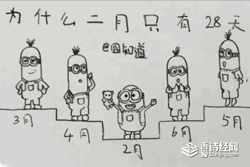 要说为什么2月份只有28天这个道理,就要说到一个有趣的传说故事了,那就是当时西方有一个皇帝为了方便大家记忆,于是将一年三百六十五天分成十二个月,其中,每年的1 3 5 7 10 12为大月有三十一天,其他的月份就是小月只有三十天。但是,这样一来一年就是有366天了,(www.ws46.cOm) 当时的人们都不喜欢2月这个月份,因为二月是处死人的月份,所以,最后人们商量将二月减少一天,只有29天,再到后面,有人议论要将八月增添一天,二月再减少一天,于是便有了现在的2月只有28天的由来了。每过四年,到了闰年,二月才是二十九天了。 |