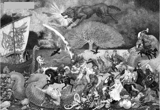 北欧神话和其他神话体系最大的特点是,北欧的神既不是无所不能的,也不是永恒存在的,世界终将毁灭,这便是芬布尔之冻和诸神的黄昏。所有的造物,无论是妖怪还是精灵,巨人或是诸神,都将会战死,与世界同归于尽。至于另一个特殊的点,北欧神话中造人的时候,首先创造的是女人。 ![]() 在其他神话中,是上帝出于各种原因毁灭了人类。但是在北欧神话中,不仅人类会灭亡,就连神、魔、妖、巨人等等万物都会灭亡,这种毁灭从一开始就是注定的。 北欧神话中最精彩的一幕就是诸神的黄昏。光明之神巴德尔梦见并感受到了死亡的阴影。神后弗丽嘉请求天地万物都发誓不可以伤害巴德尔,但只却忽略了槲寄生。 结果,洛基把槲寄生给了黑暗之神霍德尔,然后将巴德尔杀死,并说服了女巨人索克不要为巴德尔哭泣,这导致巴德尔永远留在了死亡之国。 ![]() 巴德尔死后,世界迎来了三个寒冷而漫长的冬天,在此期间,世间道德沦丧,频繁的爆发各种战争,这就是所谓的苏布尔之冬,也就是诸神黄昏的前兆。 之后太阳失去了热量,月亮被狼吃掉,曾一度被神族压制的恶魔逃脱了。巨狼芬里尔挣脱了锁链,尘世巨蟒耶梦加得从海底醒来,洛基也挣脱了惩罚的枷锁。死亡女神海拉带领着死亡大军,苏特尔带领着火巨人,赫列姆带领着冰霜巨人,一同向众神宣战。 阿撒神族虽然处于不利地位,但在得知自己的命运后仍然武装了自己,并与奥丁一起带领英灵战士们迎敌。 ![]() 最终众神之王被巨狼芬里尔吞噬,之后芬里尔又被维达尔杀死;最受瞩目的雷神托儿也与尘世巨蟒耶梦加得同归于尽;神界的守护者海姆达尔也与洛基同归于尽;战神提尔也与加尔海姆恶犬同归于尽;失去了神剑的弗雷也手持鹿角与火巨人的首领苏特尔战斗,虽然最后苏特尔杀死了弗雷,但苏特尔的中上也让其变得疯狂。他身上的火焰点燃了大地和世界之树,整个世界的善恶都沉入了火海。 诸神的黄昏大战中又两位幸存的神,分别是瓦利和维达尔,他么后来遇到了托儿的儿子曼尼和摩迪,并且在华纳海姆为质的海尼尔归来。巴德尔与霍德尔和解后从冥土中归来。随后他们在神宫的废墟之上建立的第二代阿斯加德。 |