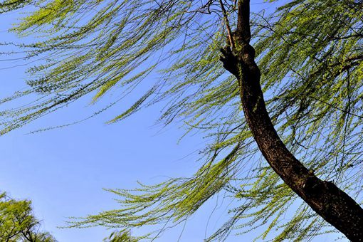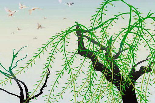 第三句“不知细叶谁裁出”是诗人对柳叶的赞咏。在这句,诗人贺知章并没有直接赞咏柳叶之美,而是紧接着对柳枝赞咏的思路来写的。这女子的“妆”是这么精致,垂下的“绿丝绦”是这样曼妙,这些如丝绦的柳条似的柳叶是谁剪裁出来的呢?诗人用惊叹的一问来赞美巧夺天工可以传情的如眉的柳叶,这一句看似疑问的话语中包含着诗人由衷的惊叹与欣喜。 最后一句“二月春风似剪刀",诗人把春风比作剪刀,可能在贺知章之前,从来没有人使用过这样的比喻,就是在他之后,也很少有人使用这样的比喻,可谓“前无古人,后无来者”。这个比喻既很家常,又很巧妙,让我们感受到这春风一丝一缕的吹来,把那柳叶一丝一缕的裁开,的确独有匠心、别开生面。 贺知章的这首诗起承转合,婉曲回环,章法严谨、富于变化,层次分明、清新美好。在这首诗里,诗人对柳树的描写层层递进:乍看满眼翠绿,色彩悦人;再看身姿婷婷,柳枝披垂,温柔可人;细看片片柳叶,精致小巧,形态喜人。前两句直接描写,第三句巧妙设问,最后一句妙语压卷。不愧为七绝中的佳作。 |