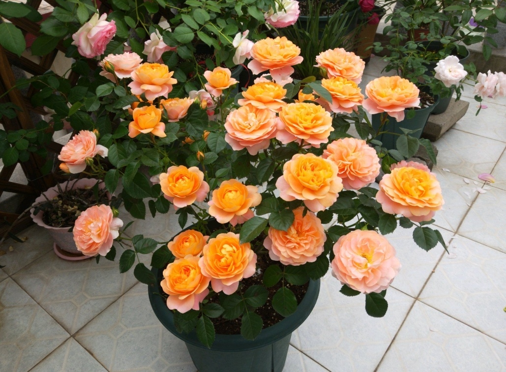 养护方法 养三角梅不用去管理太好,因为往往大水大肥的养护,反而让植株枝叶长得繁茂,花期不怎么开花。所以很多花友都说要穷养三角梅。 也就是花盆不用太大,浇水不用太勤,每个月一次复合肥,再生长花苞之前,补两次磷酸二氢钾,平时把它放在有充足光照的环境中养护,就能让它大量开花。 月季 月季很多人都喜欢养,在家里的阳台或庭院中,养上几盆不同品种的月季,每个月都能去孕蕾开花,尤其是那种藤本月季,开花量大,花期开出一簇簇的漂亮花朵,很是惹人喜爱。