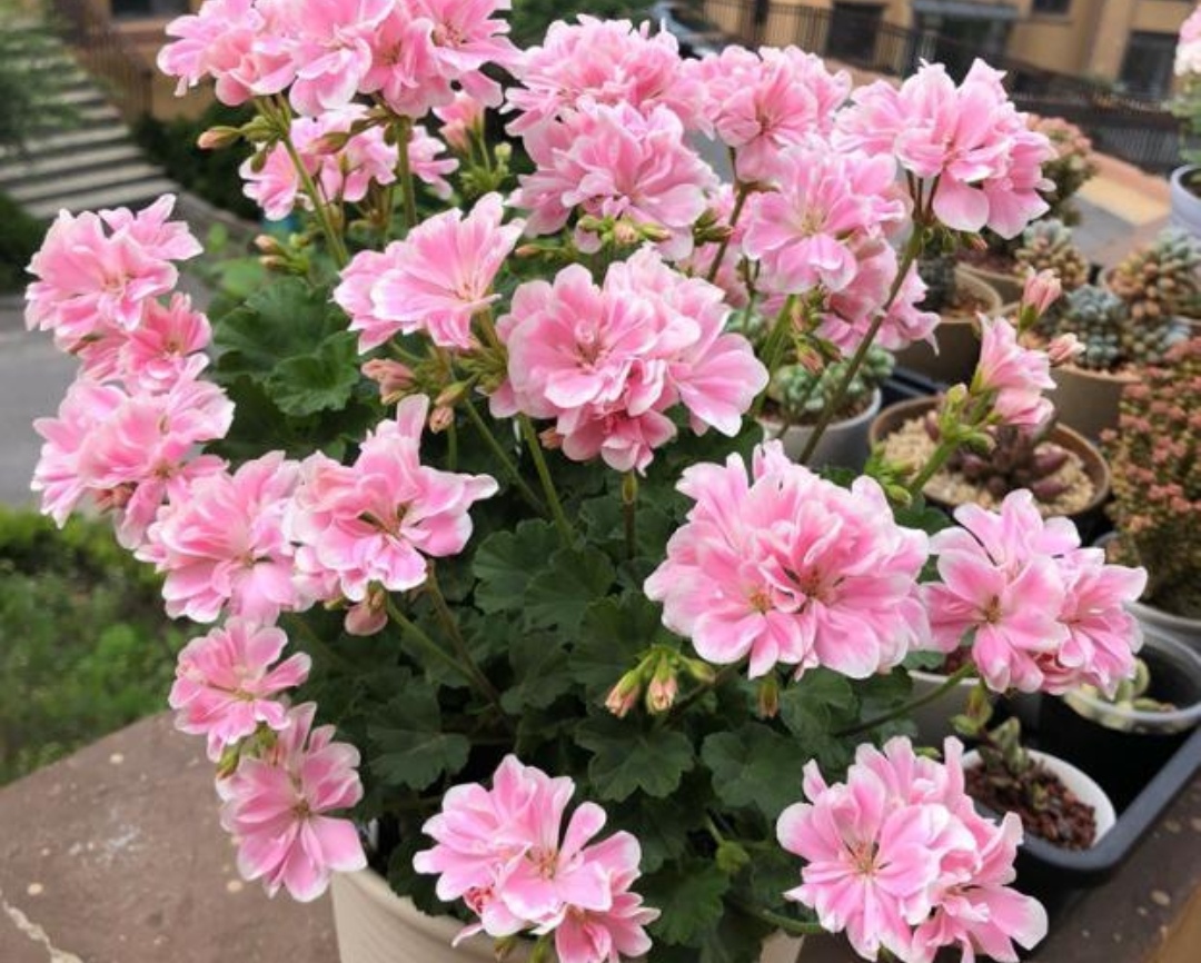 这种植物非常勤花,开花量大,花团锦簇,艳丽多姿,阳台上养上几盆,能长期有漂亮的鲜花观赏。 春天可以去剪一些天竺葵的枝条,去进行扦插繁殖。将枝条剪成10㎝左右的插穗,去除底部的叶子,只保留上面的两片进行光合作用。