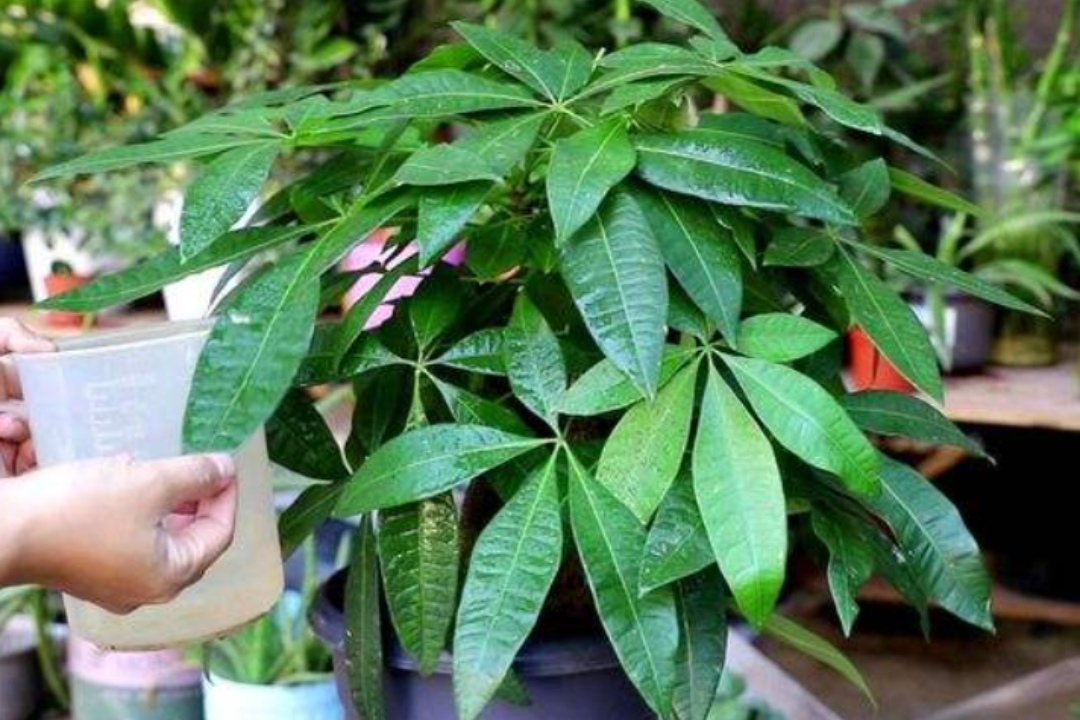 发财树是喜欢那种温暖又湿润的生长环境,也就是空气湿度高的环境,并不是在浇水方面体现。浇水越多,反而越容易出现闷根烂根的现象。(www.ws46.coM) 它本身根系就不怎么发达,再去频繁浇灌,更不利于植株生长。一般为发财树浇水,做到见干见湿就可以了。 也就是盆土八九成干时,或者用竹签插一下盆土,中间也开始变干,就及时去将盆土浇透,不要只浇湿一半盆土。让内部根系全部吸收到水分,才能长得旺盛。