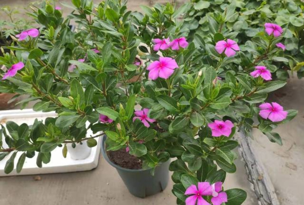 长春花 长春花是一种常年能开花的花卉,只要生长环境温度适宜,植株会一直保持常绿状态,而且每长出新枝以后,就能去生长花苞开花。 这种花也是新株开花量比较大,养上几年以后,开花量就会越来越少,甚至只长叶子不开花。这是因为植株根系和枝条都已经老化,吸收能力减弱,导致生长不旺,还容易出现黄叶。