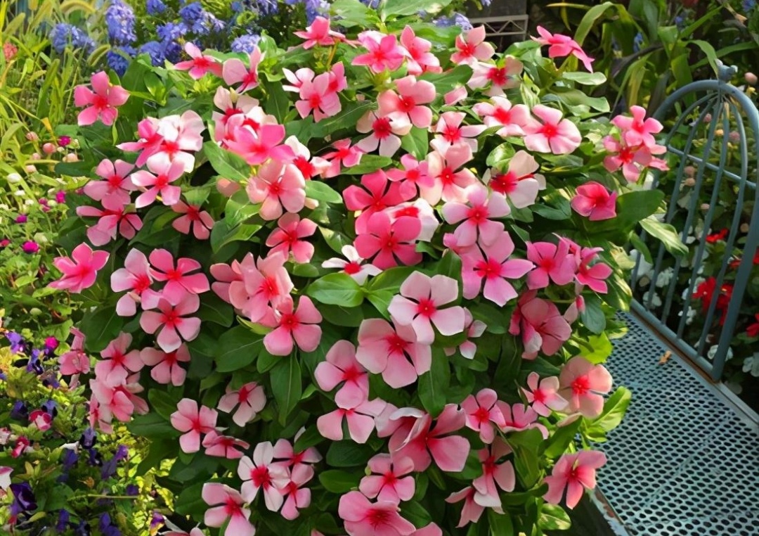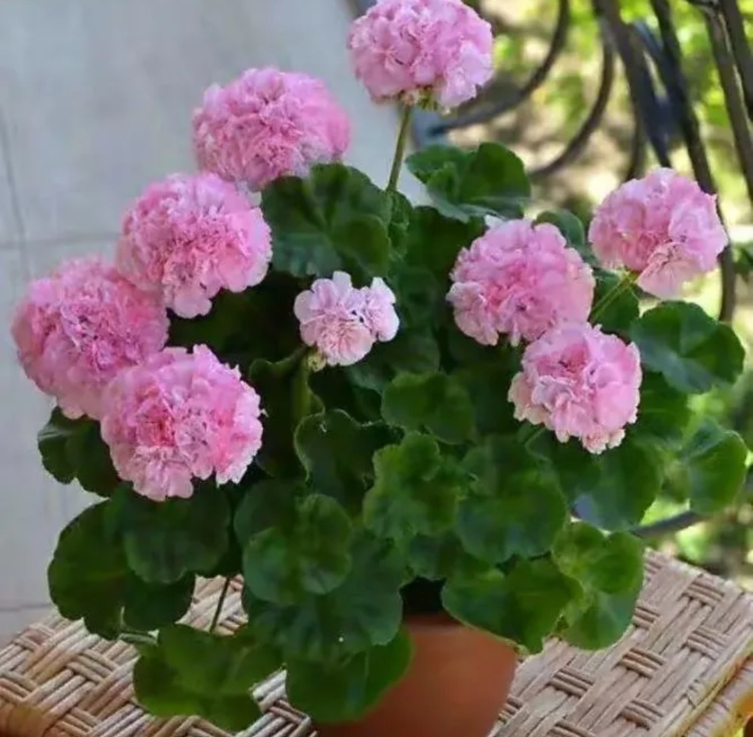 长春花非常好繁殖,春天可用种子繁殖新苗。用大点的花盆,装上疏松透气的培养土抚平整,再将种子均匀播种到盆面,用喷壶去将盆土浇湿,大约一周左右就能长出新苗。 天竺葵 天竺葵是庭院、阳台必养的花卉,它开花漂亮,花色繁多,又很勤花,在家里多养上几盆能长期看花。只不过这种花养一两年就要及时去用嫩枝扦插新株。
