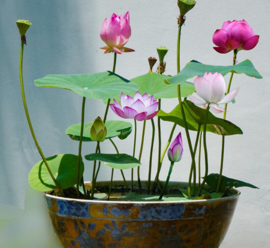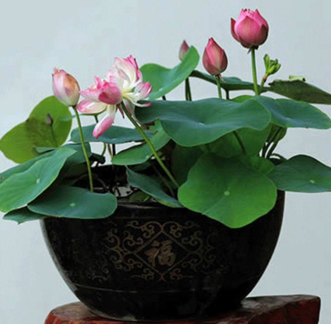 准备好培养器皿后,加入半盆含有丰富腐殖质的土壤,再将发芽的种子栽种到盆土中,加入少量的清水,刚好没到新芽即可,后期再随着茎叶的生长随时添水。 一段时间后,盆面上就长满碧绿圆润的莲叶,再去给它补充一些复合肥,并多去见见阳光,很快就能开出美丽的大花朵。