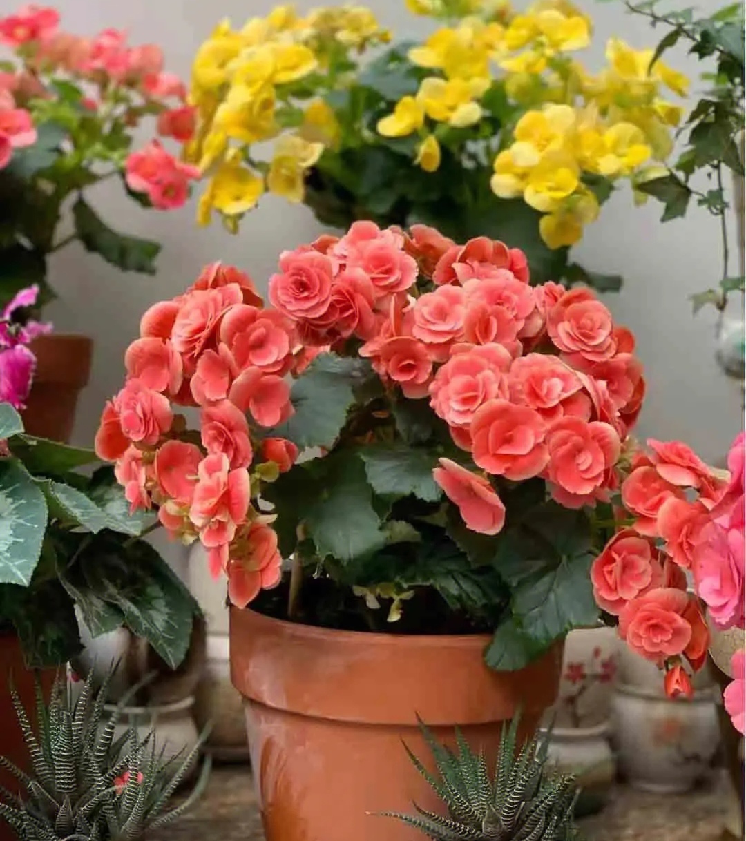丽格海棠 丽格海棠也是非常适合家庭养来观赏的小型盆栽花卉,它的叶子浓绿,花色鲜艳,又非常耐阴,即使家里没有充足的光照也能养好。