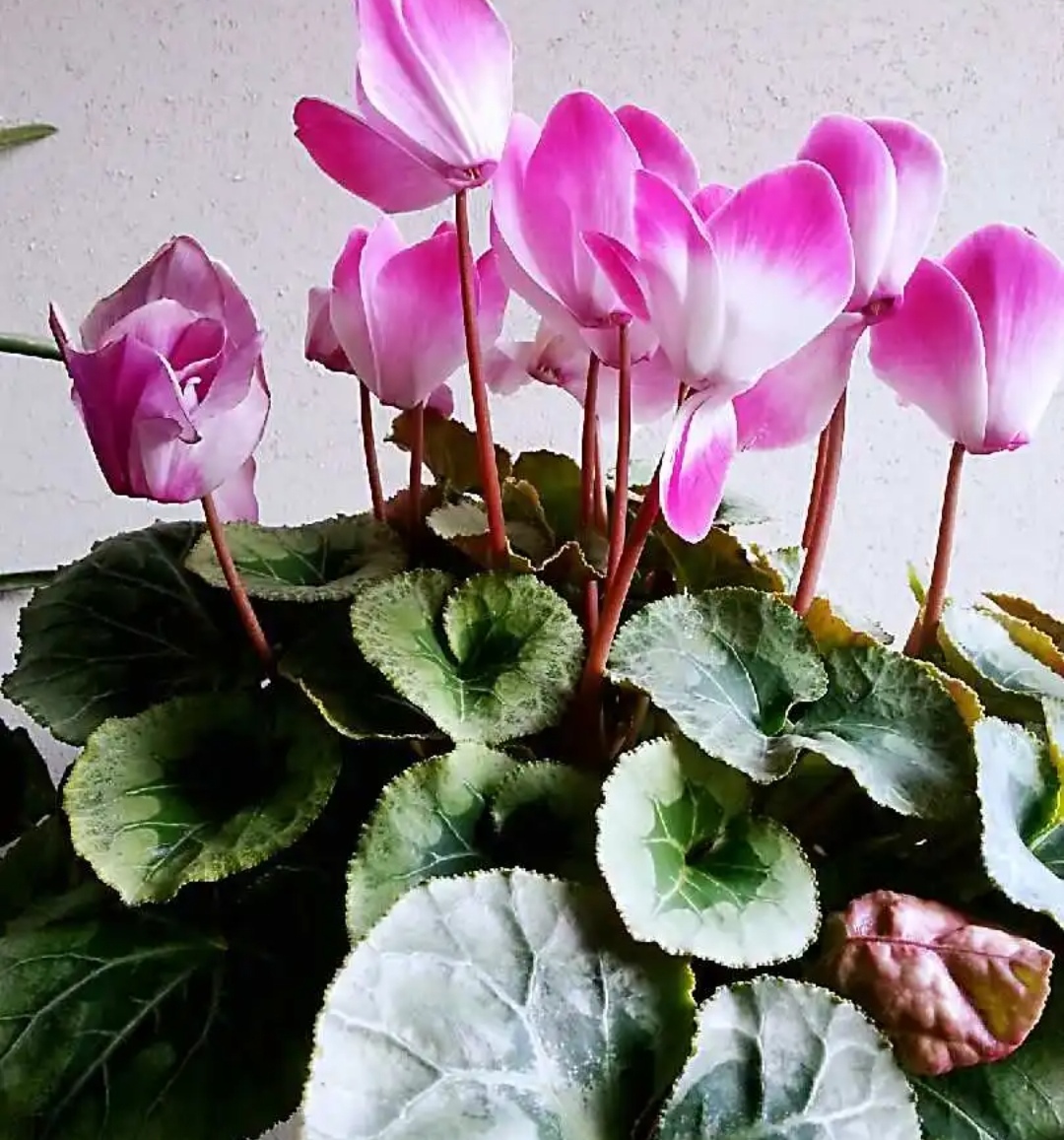 仙客来 仙客来的花期也在冬春季节,天气暖和以后,花期也逐渐结束,这个时候是很怕强光暴晒的,放在阳光下很容易晒伤叶子。