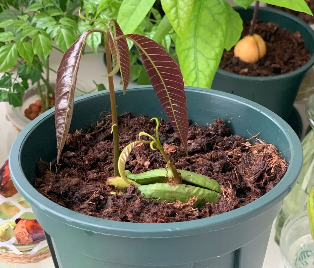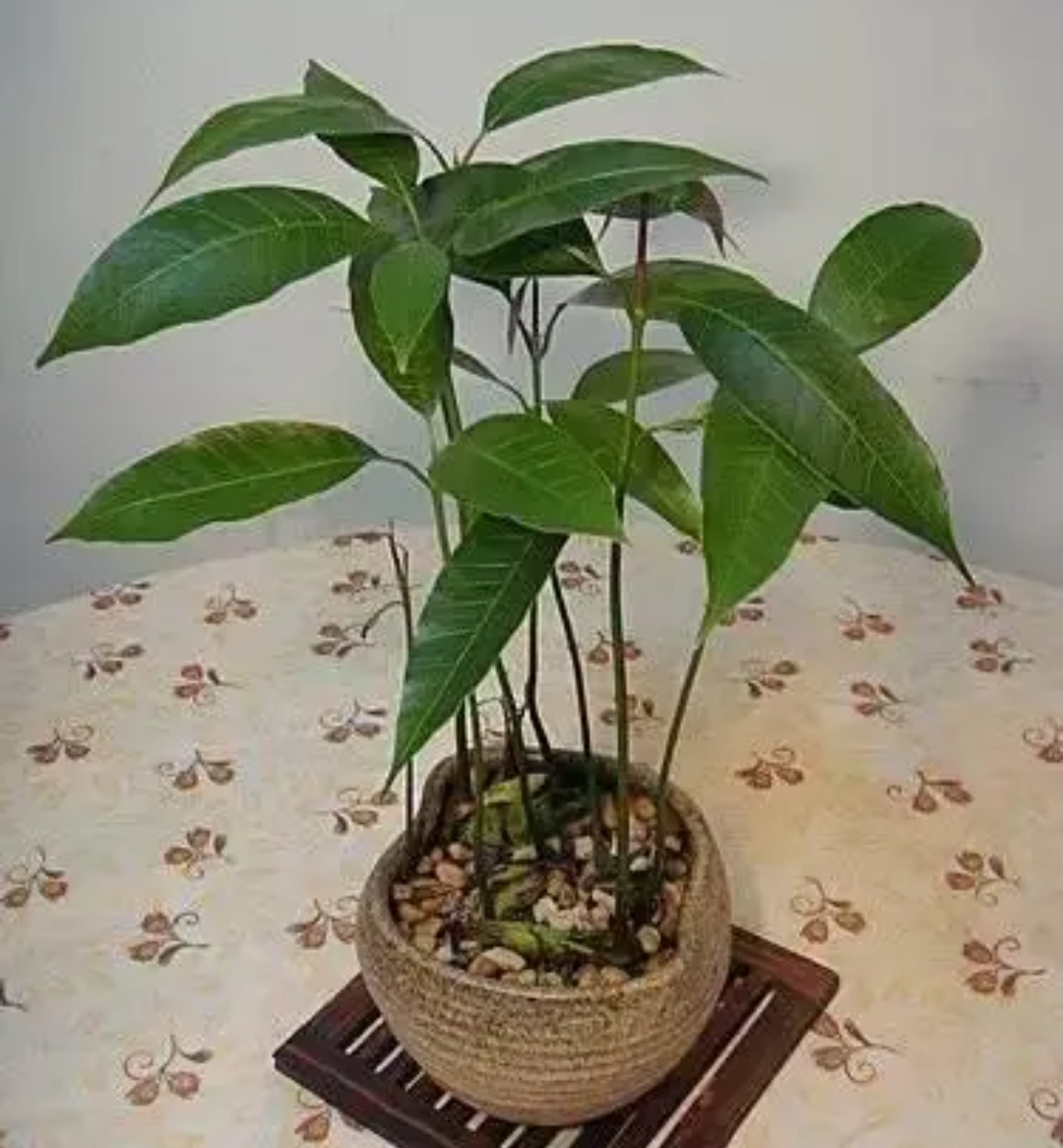 芒果小盆栽 自己在家培育水果小盆栽,主要以观赏为主,很难让它去结果,所以一般都会选择热带水果,养在家里能常年翠绿,清新自然。 像芒果的种子,也是非常适合种小盆栽观赏的,有兴趣的可以试试。