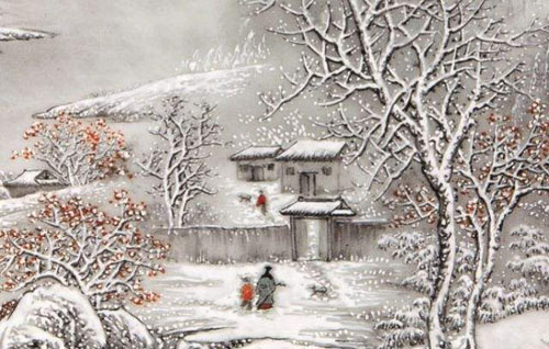 “柴门闻犬吠,风雪夜归人”,出自唐代刘长卿的《逢雪宿芙蓉山主人》。意思是“柴门外忽传来犬吠声声,原来是有人冒着风雪归家门。”。![]() 日暮苍山远,天寒白屋贫。 柴门闻犬吠,风雪夜归人。 鉴赏: 这是一首诗,也象一幅画。全诗仅以寥寥二十个字,便勾勒出一个严冬寒夜的山村景象和一个逢雪借宿者的形象。 |