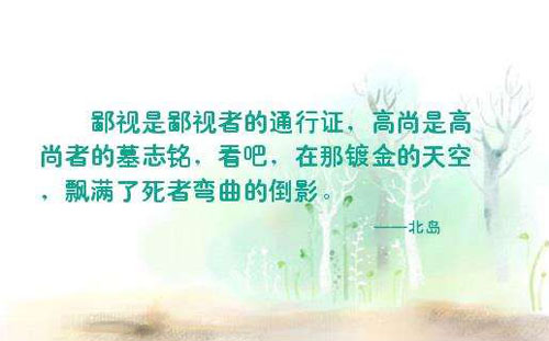 “卑鄙是卑鄙者的通行证,高尚是高尚者的墓志铭”,出自北岛的《回答》。意思是“卑鄙的人可以拿着卑鄙的证件通行无阻,而高尚的人只能在死的时候有一个高尚的墓志铭”。